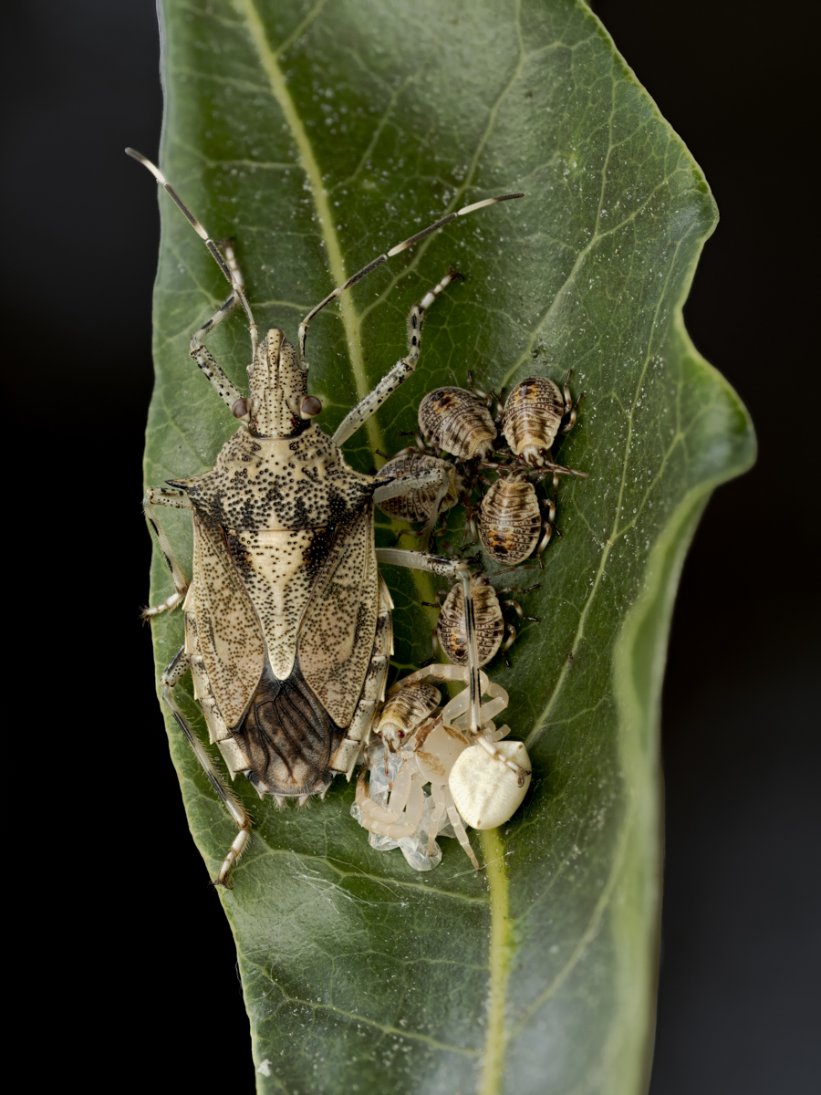 Mottled Shield Bug + Spectacular Crab Spider
